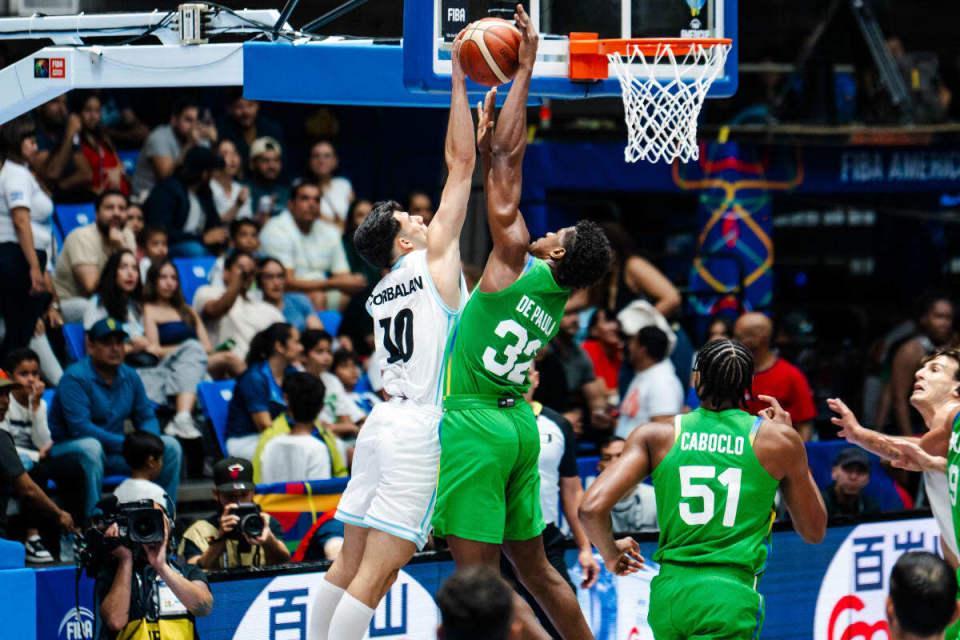 卫冕冠军阿根廷男篮在半决赛83-73战胜加拿大男篮,巴西男篮92-77逆转美国男篮。双方上届美洲杯决赛,阿根廷男篮客场75-73险胜东道主巴西男篮夺冠。本场双方连续两届会师决赛争冠,首节卡法罗2+1命中全场首球,巴西男篮多点开花一波7-0攻势取得领先。科巴兰三分与布鲁西诺抛射命中,德奥达托与维尔多萨对攻一记三分,费尔南德斯中投得分,巴西男篮连得6分。卡法罗勾手追分,首节结束阿根廷男篮15-16落后巴西男篮,双方首节均是命中2记三分。